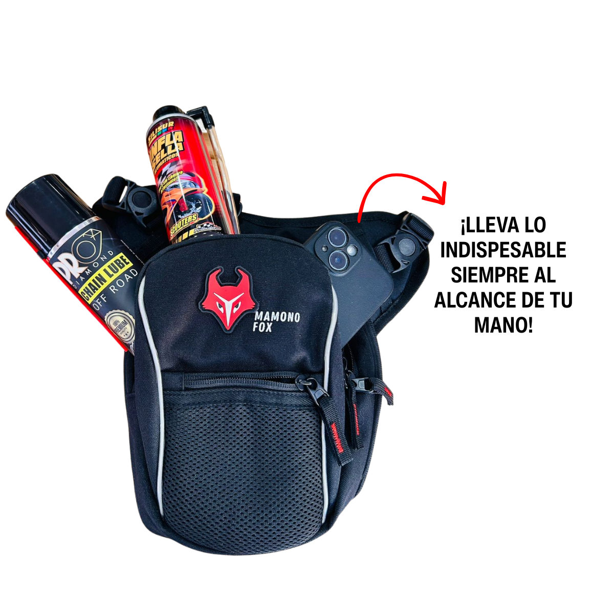 Mantené tus pertenencias seguras y siempre a mano con la muslera Mamono Fox. Diseñada específicamente para motociclistas, esta riñonera de pierna combina durabilidad y practicidad, permitiéndote moverte con total libertad sin mochilas pesadas.